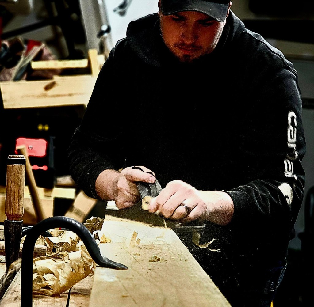 Traditions Timber Frames was started in 2024 and is owned by Dustin and his wife Alyssa. Dustin has always dreamed of owning his own timber frame business, and it is a skill that has come very natural for him. He is a carpenter by trade with over 10 years of experience and knowledge with many traits. To all of his close family and friends, he is known as the guy that can “do anything”. He has always wanted to do more, and strives to push and challenge himself. He has read every book he could get his hands on, and gathered many unique timber framing tools that hold a lot of history. He is completely self-taught and has learned all of his skills of timber framing by being very hands on.